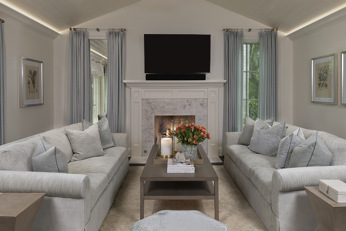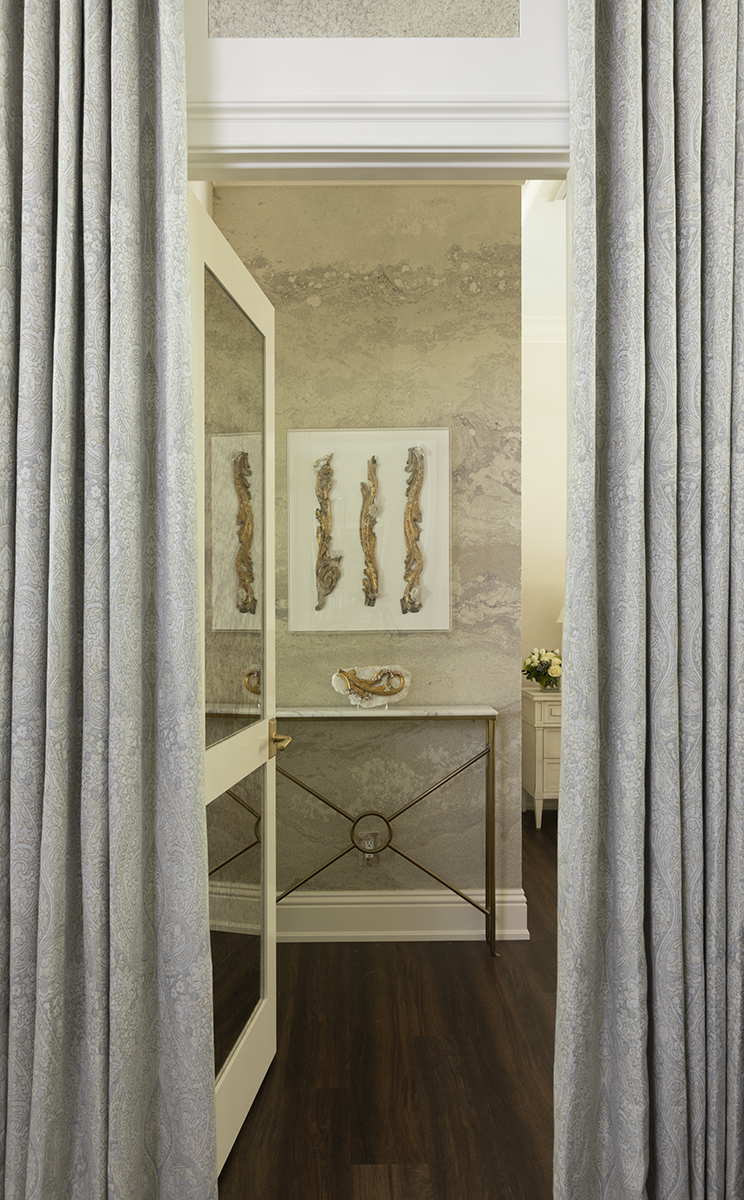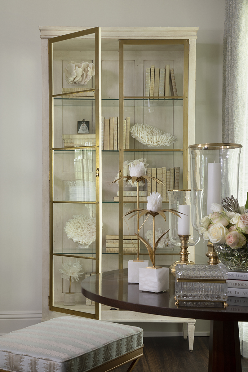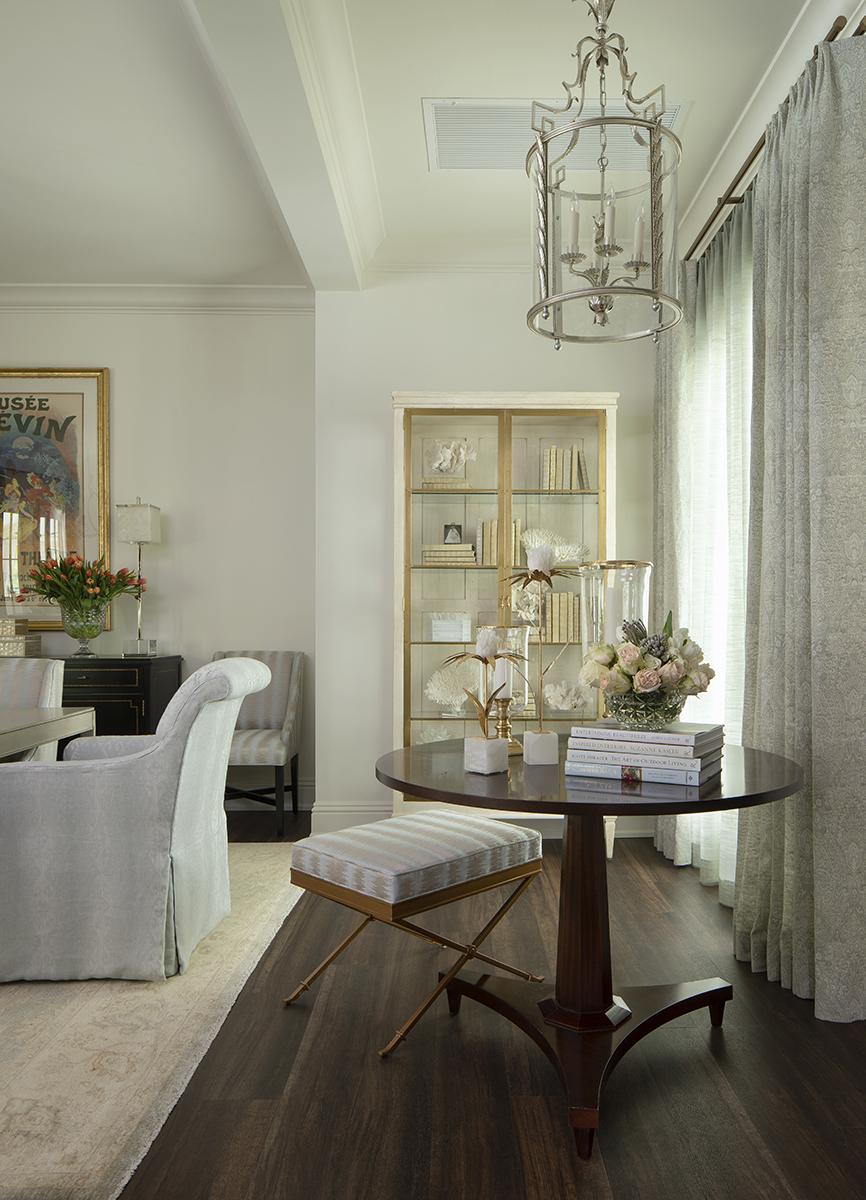 Starting out as a simple refurnish and refresh for a new resident to Florida, this project evolved into a massive remodel that spanned over the course of a year and a half. It required true creativity when it came to the maximizing tight spaces. Our main objective was to define comfort in the furnishings and most of all, add some bling! Bethany had complete trust and creative freedom from the clients on this project with their biggest request being to avoid coastal trends. The vision they had was to incorporate richness and texture that created a beautiful setting to showcase their own artwork. Bethany adorned each space with custom upholstery and specialized finishes. Despite the fact that these rooms feel primarily modern in nature, she introduced a select number of vintage pieces, and antique finds providing a sense of diversity and a modern twist on traditional pieces.